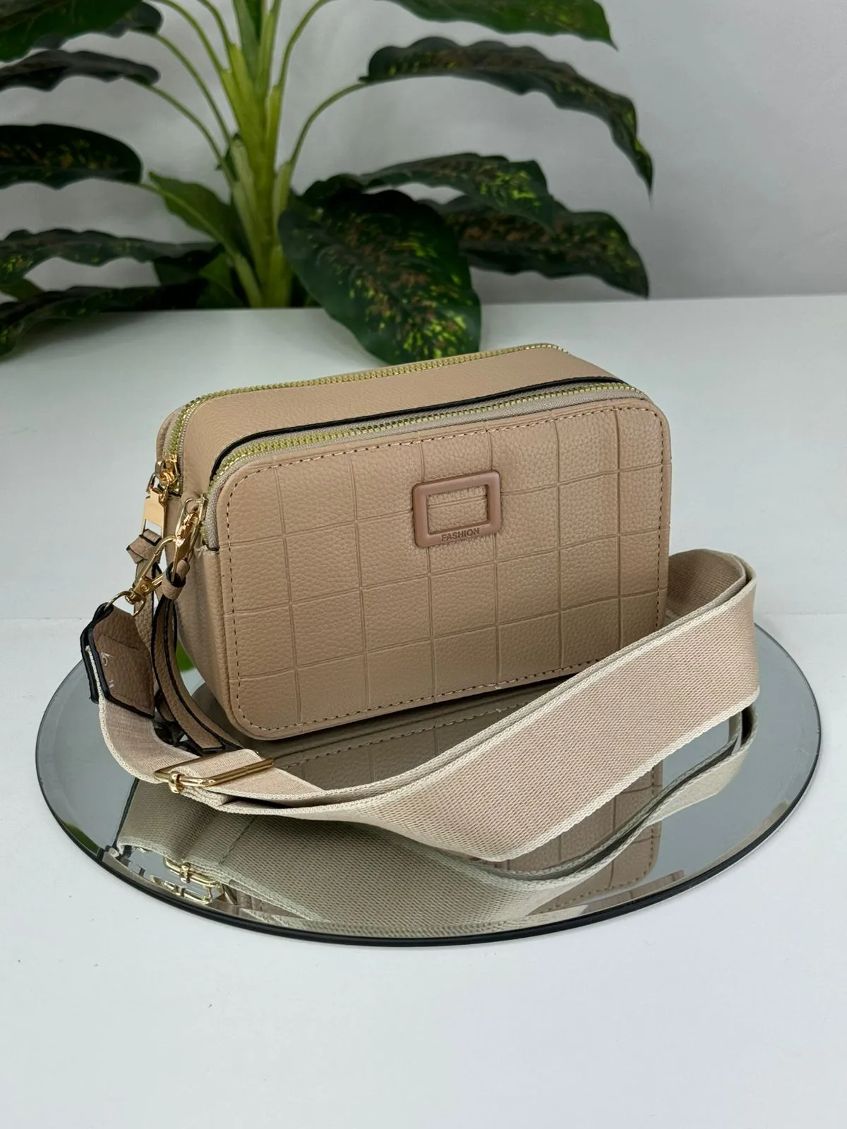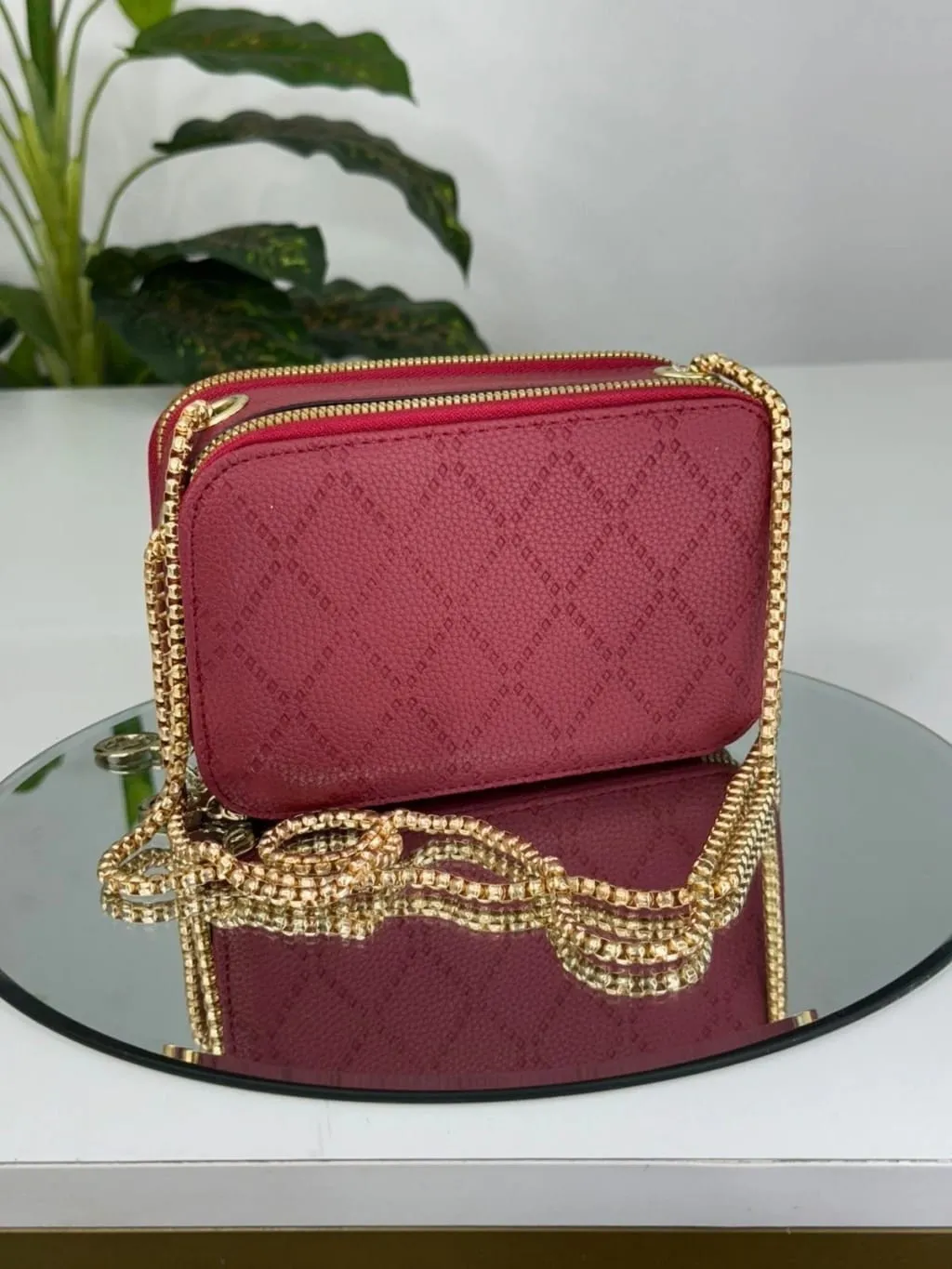 Bolsa Selena 2 zíperes alça de corrente dourada